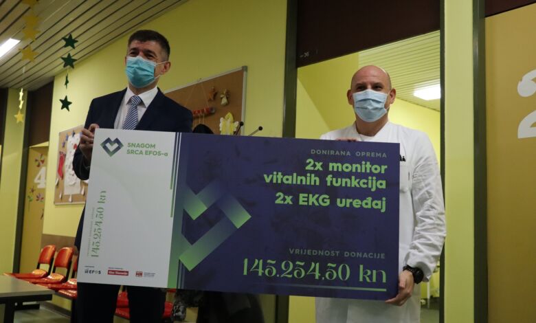 Podsjetimo, u sklopu akcije „Snagom srca EFOS-a“ organizirani su humanitarni simfo-rock koncert i utrka od 6,1 km, kojima je zaključno prikupljeno 153.709,62 kn, od čega su kupljena dva EKG uređaja različitih tipova i dva monitora vitalnih funkcija u ukupnoj vrijednosti od 145.254,00 kn
