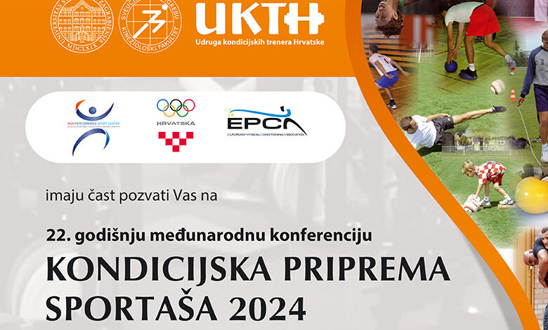 Udruga kondicijskih trenera Hrvatske i Kineziološki fakultet Sveučilišta u Zagrebu pozivaju sve zainteresirane na 22. godišnju međunarodnu konferenciju “Kondicijska pripema sportaša 2024” koja će biti održana 23. veljače 2024. godine na Kineziološkom fakultetu, Horvaćanski zavoj 15.