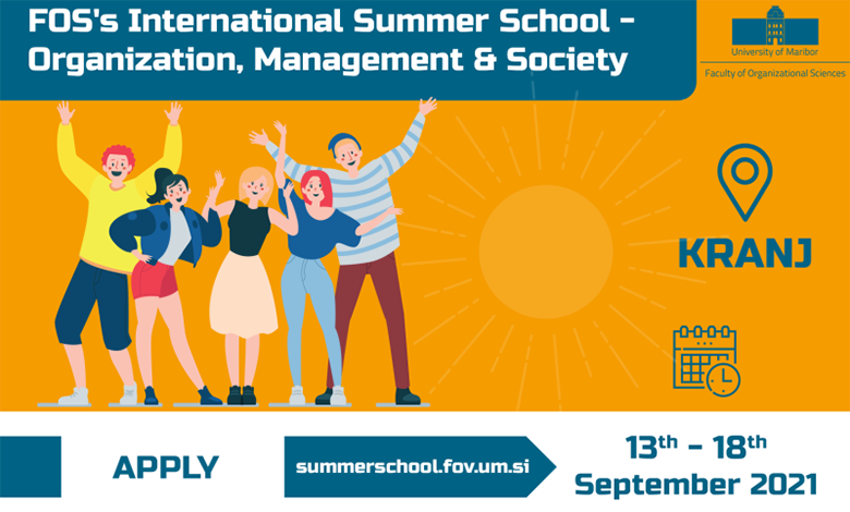 Fakultet organizacije i informatike u Varaždinu poziva studentice i studente preddiplomskih i diplomskih studija da se prijave na međunarodnu ljetnu školu, International Summer School „Organization, Management, and Society“ FOV 2021, koja će se održati on-site u razdoblju od 13. do 18. rujna 2021. godine u Kranju u Sloveniji. U sklopu programa biti će održana i dva online predavanja, 6. i 24. rujna.