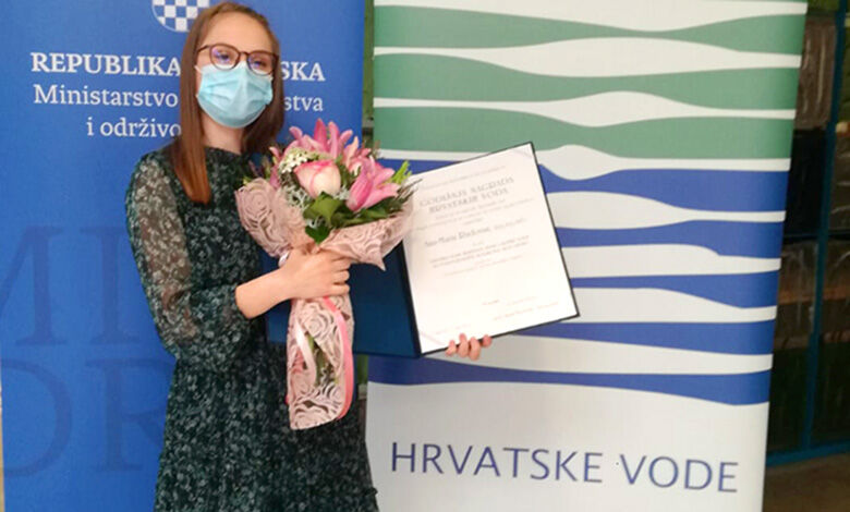Nagradu Hrvatskih voda za najbolji diplomski rad u kategoriji drugih područja koja se odnose na vodno gospodarstvo dobila je Ana-Maria Radovan, alumni Geotehničkog fakulteta Svečilišta u Zagrebu. Kolegica je diplomirala s radom naziva “Dinamika slane i slatke vode na vodocrpilištu Boljkovac kod Zadra”, kojeg je izradila pod mentorstvom prof.dr. sc. Ranka Biondića.