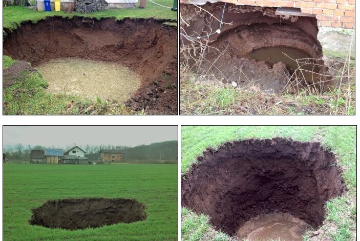 Naročito su opasne urušne vrtače u pokrovnim naslagama iznad okršene vapnenačke podloge. Ovaj tip koseizmičkih površinskih deformacija dosad su zabilježene u selu Mečenčani u općini Donji Kukuruzari, ali je o sličnim pojavama dojavljeno i iz Sunje i Petrinje. U selu Mečenčani zabilježeno je sedam urušnih vrtača oko kuća u selu i u dijelu polja jugozapadno od sela. Također, dojavljeno je i o pojavi još jedne, dosad najveće urušne vrtače promjera oko 15 – 20 metara, koja je nastala 6. siječnja 2021. između 12 i 14 sati. Postoji stoga velika vjerojatnost da se slične pojave na tom području mogu očekivati i u narednim danima i mjesecima.