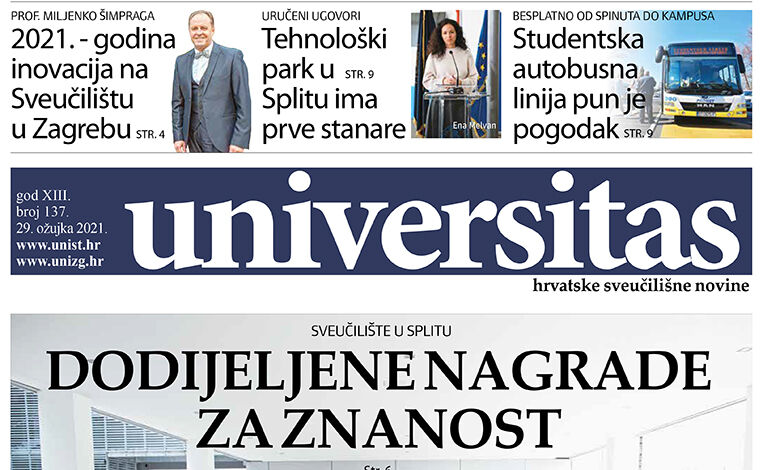 Novi, 137. broj sveučilišnih novina Universitas izašao je DANAS, u ponedjeljak 29. ožujka, u Jutarnjem listu, Novom listu i Slobodnoj Dalmaciji, a sutra i Večernjem listu.