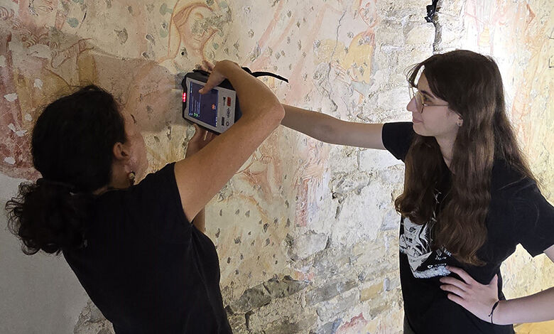 – Radionica je započela s predavanjima, a u drugom dijelu radionice teorija je provedena u praksu; najprije uzorkovanjem barokne žbuke s pročelja koja će kasnije, u laboratoriju kolegice Zubin Ferri biti podvrgnuta analizi, a zatim provedbom neinvazivnih analitičkih istraživanja pod vodstvom kolegice Kavkler. Pritom je upotrebljen prijenosni Ramanov spektrometar za identifikaciju pigmenata i detekciju eventualno prisutnih štetnih soli. Zanimljiv rezultat dobiven je snimanjem crvenog pigmenta s fragmenta oslika koji je ove godine otkriven na istočnom zidu, u nekadašnjoj apsidi. Nedvojbeno je riječ o cinoberu koji istovremeno nije detektiran na sjevernom zidu, gdje je na dva različita područja slike detektiran crveni oker. Ovom metodom također je ustanovljeno da na površini zidne slike štetnih soli gotovo i nema, saznajemo od prof. Pološki.