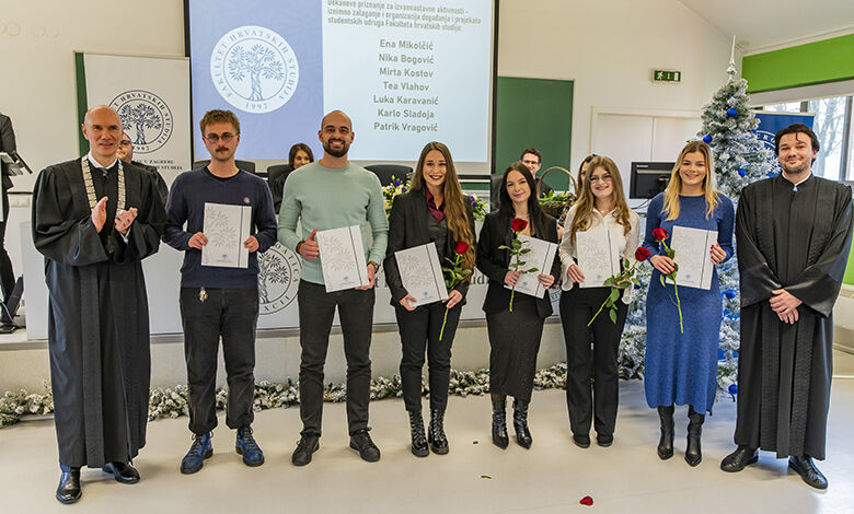 Središnji dio svečanosti bio je posvećen dodjeli Dekanovih nagrada i priznanja najboljim i zaslužnim studentima, nastavnicima te nenastavnom osoblju, nakon čega se u ime nagrađenih zahvalila nova predsjednica Studentskog zbora Fakulteta hrvatskih studija Iva Ignjačić, studentica prve godine diplomskog studija psihologije.
