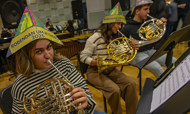 – Ovo je naš prvi nastup na Rođendanu umjetnosti koji se priređuje na Muzičkoj akademiji. Iznimno smo počašćeni što smo dobili priliku sudjelovati i pokazati javnosti kako izgleda proba gudačkog orkestra studenata 1. godine Muzičke akademije. Bilo je jako lijepo, uživali smo izvodeći Händelov Concerto grosso br. 1, Bachov koncert za obou i violinu raspisan za dvije violine u D molu, te Brahmsove valcere, ne skrivajući svoje oduševljenje otkrili su nam zagrebački studenti 1. godine violine Monika Beus i Jan Zajec Uzeirbegović.