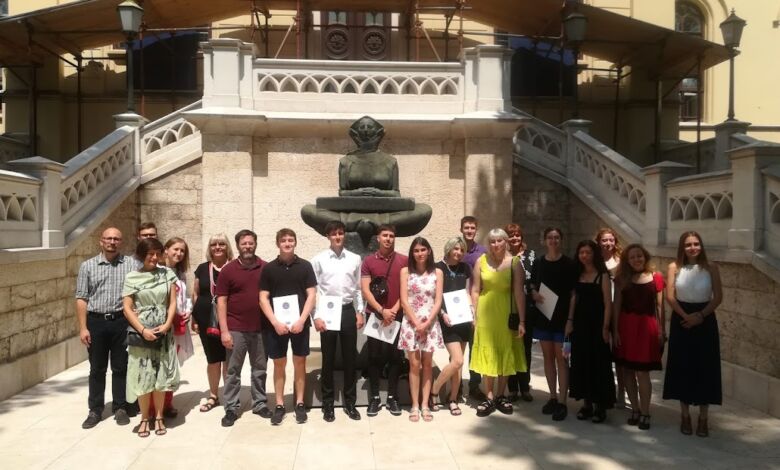 Svečana dodjela diploma završila je prekrasnom izvedbom pet tradicionalnih hrvatskih skladbi u aranžmanu orkestra Vizin iz Pečuha čiji je član polaznica Škole, stipendistica Sveučilišta, Míra Zsivkovics, koja je na kraju s orkestrom otpjevala poznatu pjesmu Jedna je Hrvatska.